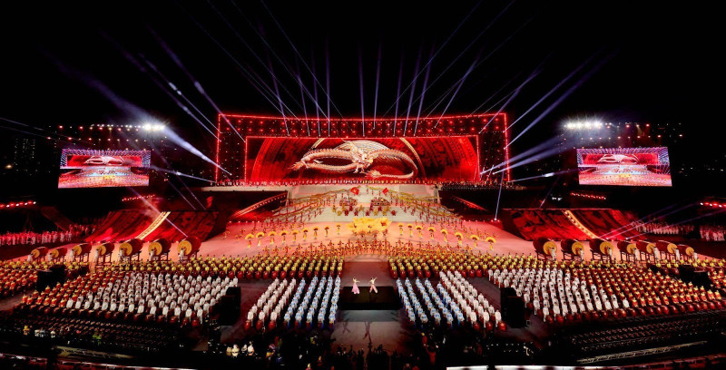 Trong đó, màn trống hội là một trong những tiết mục được dàn dựng công phu nhất, để lại ấn tượng sâu sắc cho khán giả. Với hơn 2.500 diễn viên và hơn 1.000 trống hội các loại, tiết mục đã tạo nên không gian nghệ thuật hùng tráng, vang vọng khí thế non sông. Những hồi trống rền vang, lúc khoan thai, lúc dồn dập, khắc họa sinh động tinh thần quật cường, ý chí kiên trung và truyền thống anh hùng của dân tộc Việt Nam.